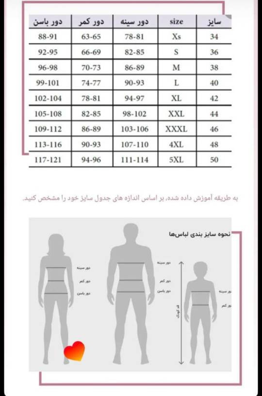 جدول سایزبندی انتهای اسلاید ها میباشد.