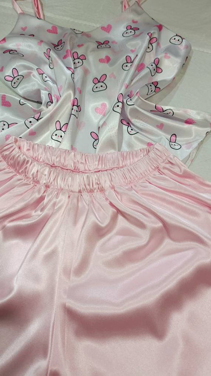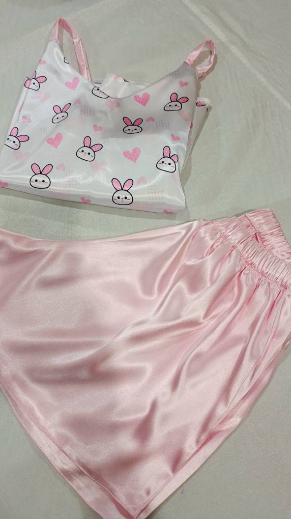 لباس خواب زنانه- تاپ و شلوارک طرح خرگوش صورتی