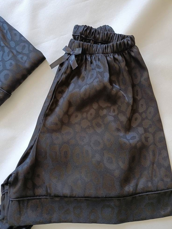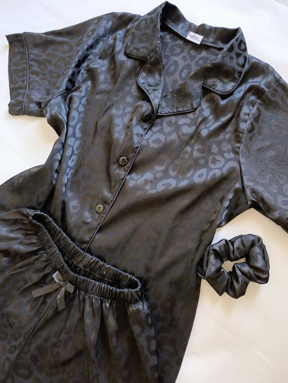 لباس خواب زنانه- بلوز آستین کوتاه و شلوارک طرح ژاکارد پلنگی