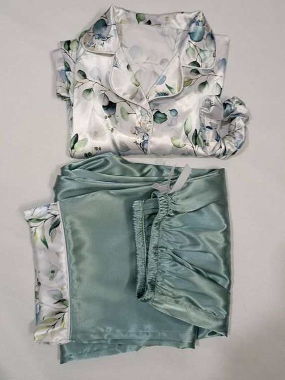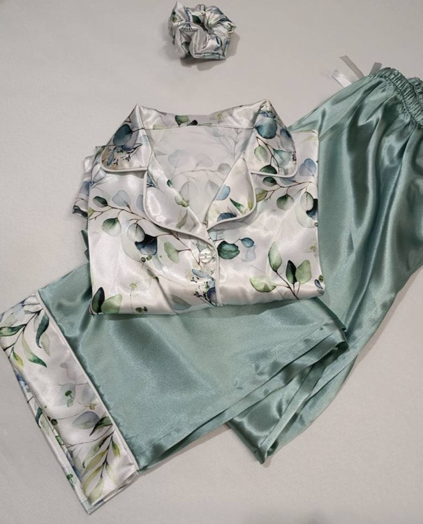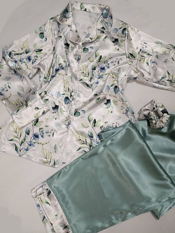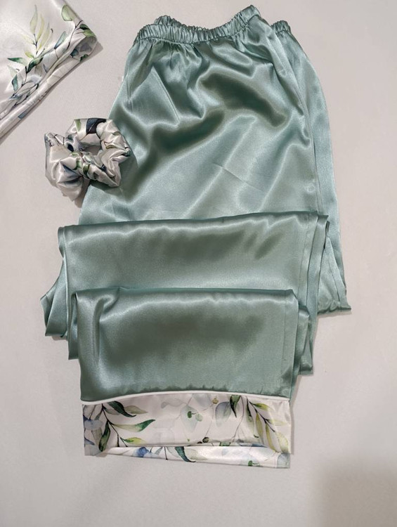 لباس خواب زنانه- بلوز و شلوار ساتن طرح گل های آبرنگی