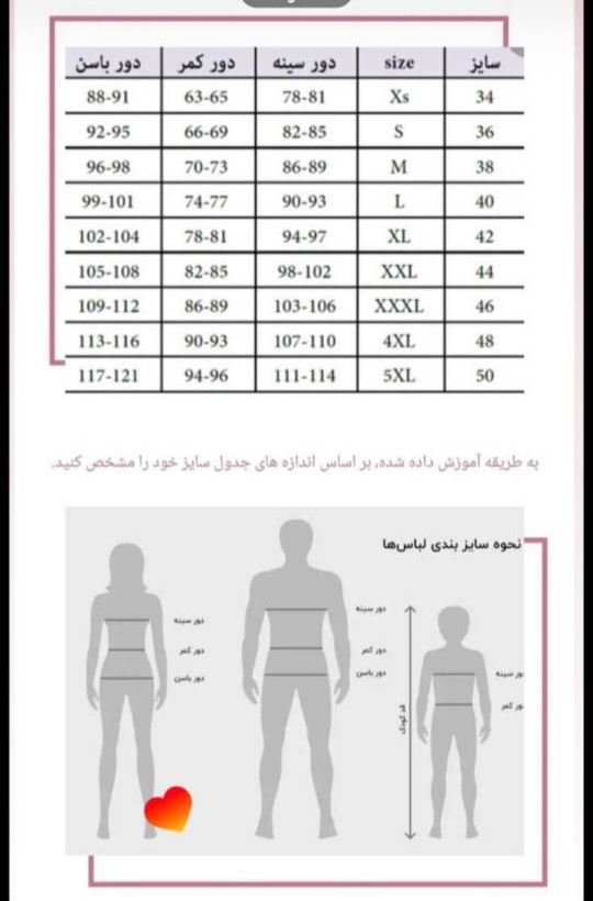 جدول سایزبندی انتهای اسلاید ها میباشد.