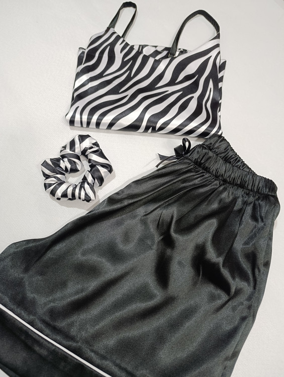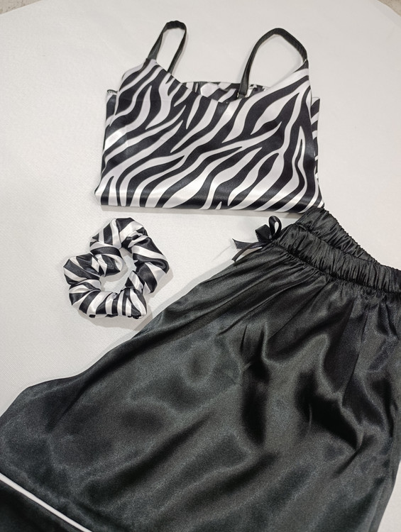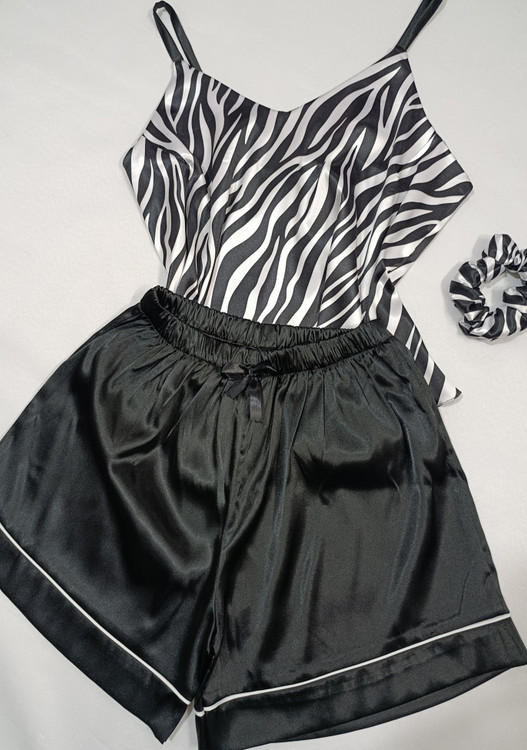 لباس خواب زنانه- تاپ و شلوارک طرح زبرا