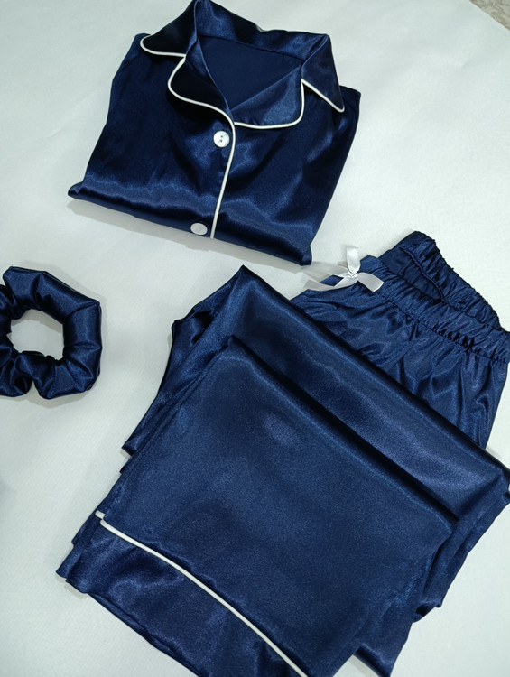 لباس خواب زنانه- بلوز و شلوار ساتن ساده